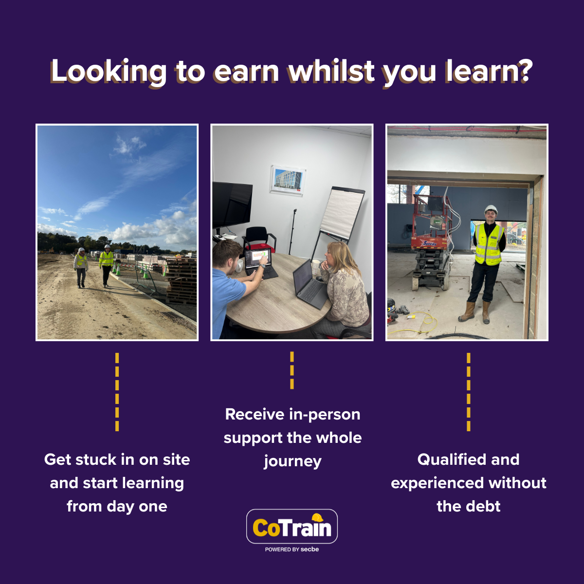 Here at CoTrain, we have supported over 300 apprentices in the Construction Industry. We cover apprenticeships in construction site supervisors, quantity surveyors, ground works, bricklaying, carpentry/joinery, interior fit-out, site management and many others.