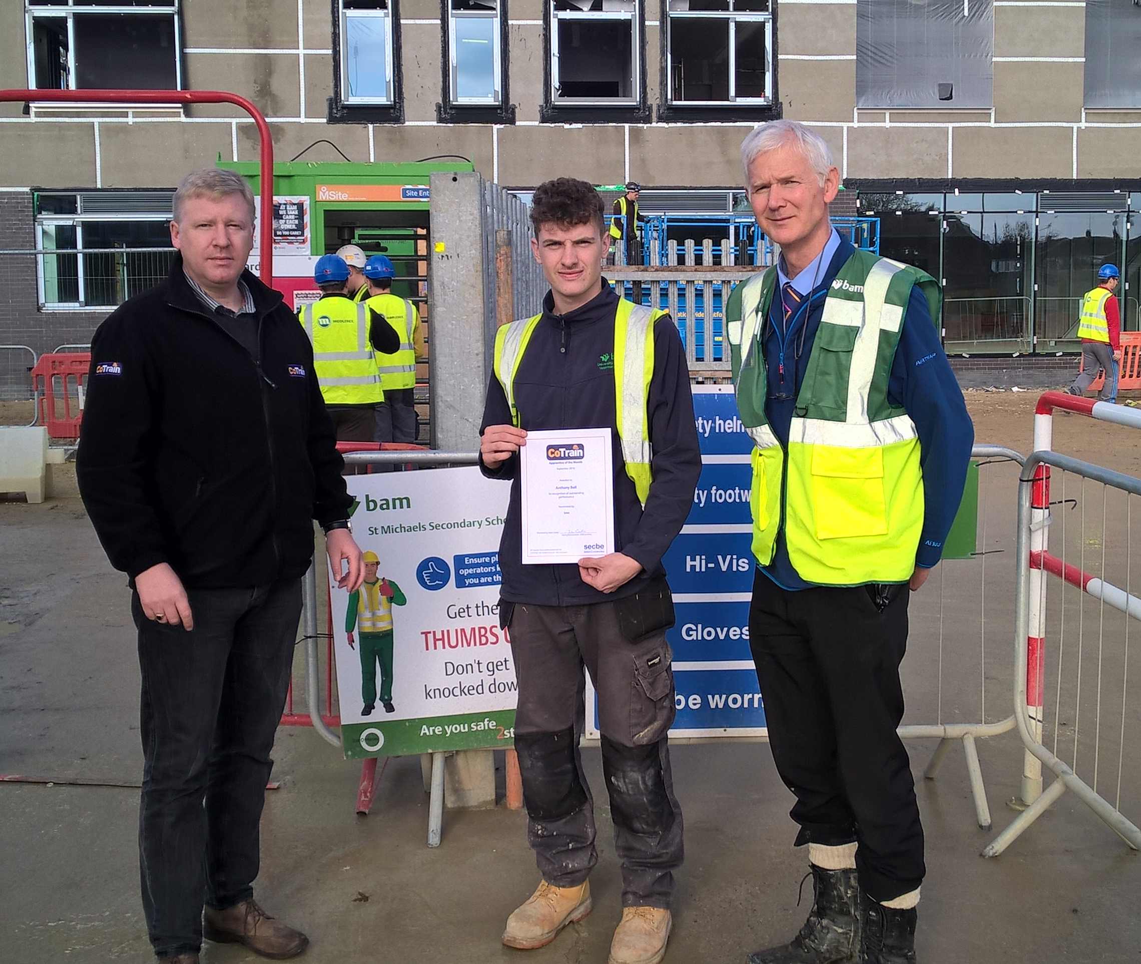 The CoTrain September Apprentice of the Month award has been presented to Anthony Ball, a 2nd year carpentry apprentice currently working with BAM Construction on a project in Aylesbury.